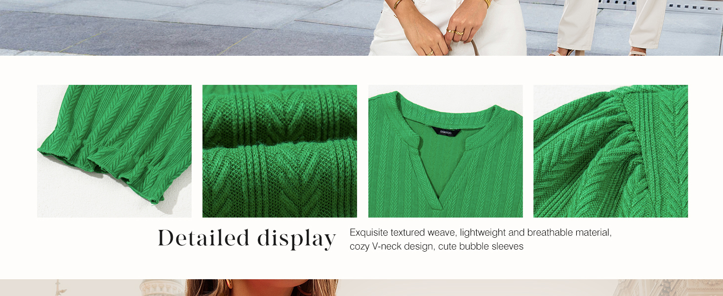 - u003Cliu003Eu003Cspan class=u0022a-list-item a-size-base a-color-baseu0022u003EFabric: Dokotoo puff sleeves blouses from knit textured fabric, this blouse exudes quality and style, that is suitable for various settingsu003C/spanu003Eu003C/liu003E u003Cliu003Eu003Cspan class=u0022a-list-item a-size-base a-color-baseu0022u003EComfort: This blouse is designed to be comfortable to wear during the warmer months. The casual style and knit textured fabric make it a great choice for everyday wear.u003C/spanu003Eu003C/liu003E u003Cliu003Eu003Cspan class=u0022a-list-item a-size-base a-color-baseu0022u003EVersatility: The cute and casual design of this blouse makes it suitable for various occasions, from casual outings to semi-formal events. It can be easily dressed up or down depending on the styling.u003C/spanu003Eu003C/liu003E u003Cliu003Eu003Cspan class=u0022a-list-item a-size-base a-color-baseu0022u003EStyling Options: The solid color and textured knit fabric of this blouse make it easy to pair with different bottoms, such as jeans, shorts, or skirts.u003C/spanu003Eu003C/liu003E u003Cliu003Eu003Cspan class=u0022a-list-item a-size-base a-color-baseu0022u003ECleaning: Wash Recommended With Cold Water/Hang Or Line Dry/Wash with like colours/Do Not Bleach,that will increase the durability of your clothes.u003C/spanu003Eu003C/liu003E
