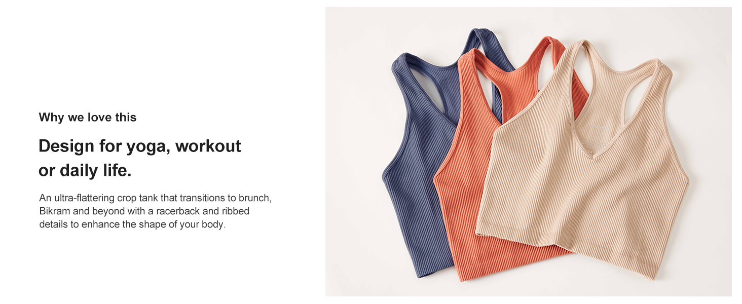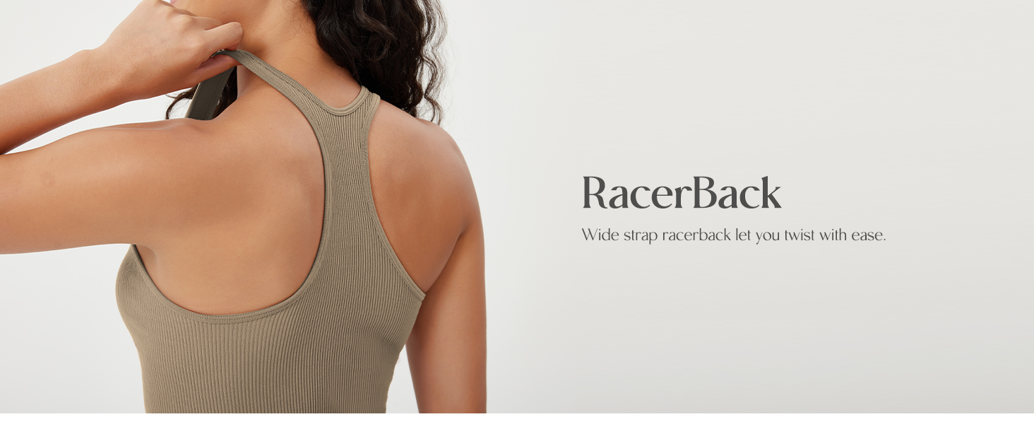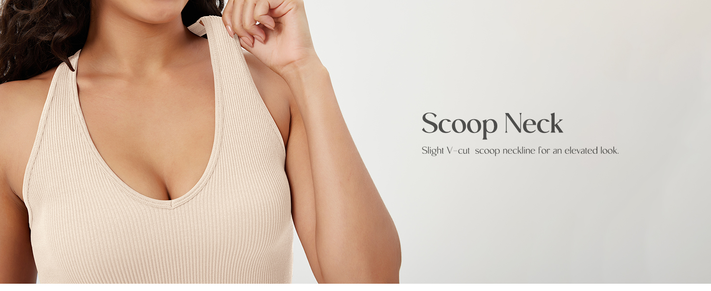 - Scoop Neck & RacerBack: Slight V-cut scoop neckline for an elevated look; Wide strap racerback let you twist with ease.