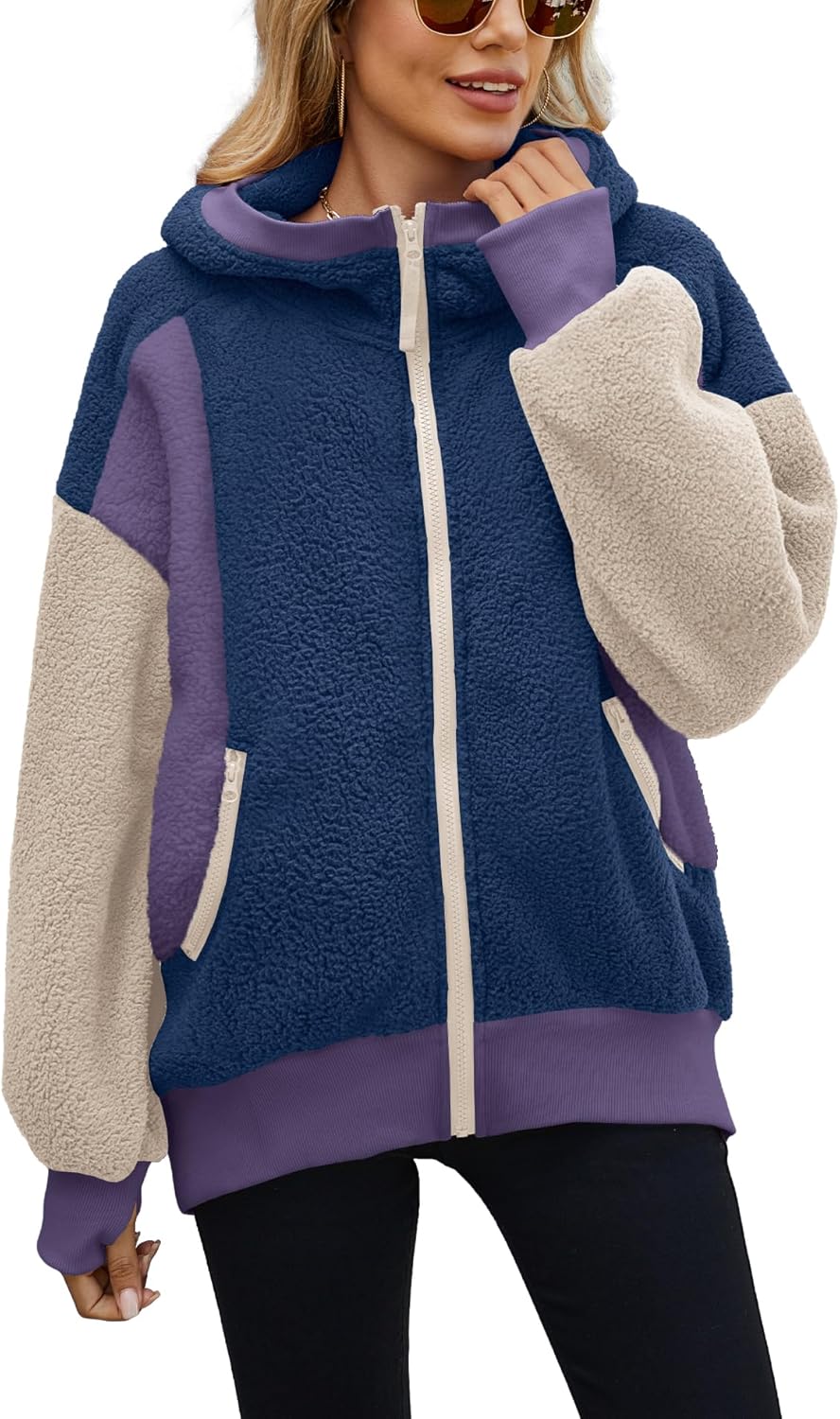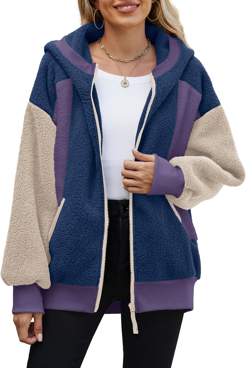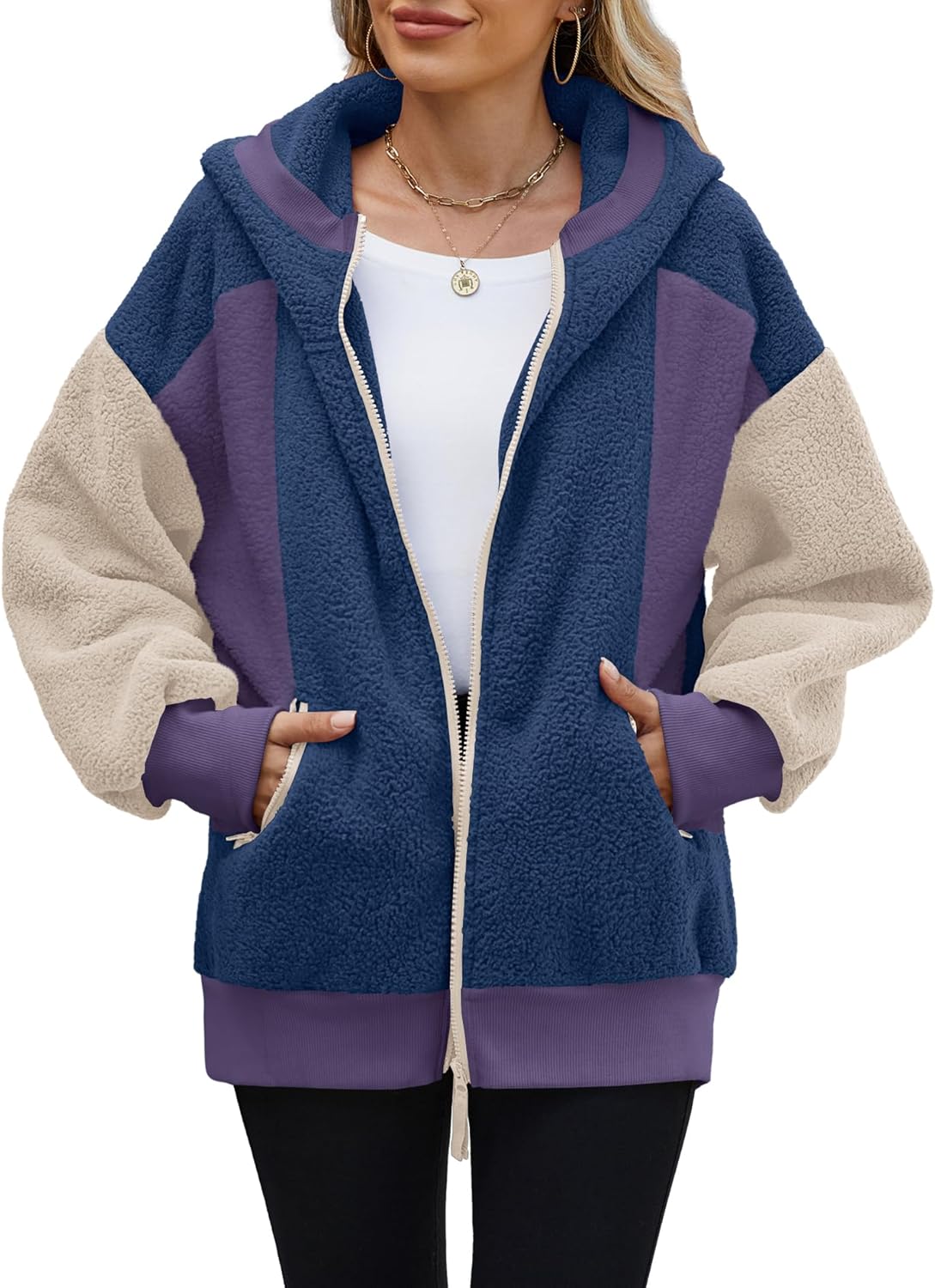 - Features: Fuzzy hoodies for women with full zip up design and 2 side functional pockets, hooded and oversized fit, the cozy sweaters for women with elastic cuffs design makes you dress up and down easily
